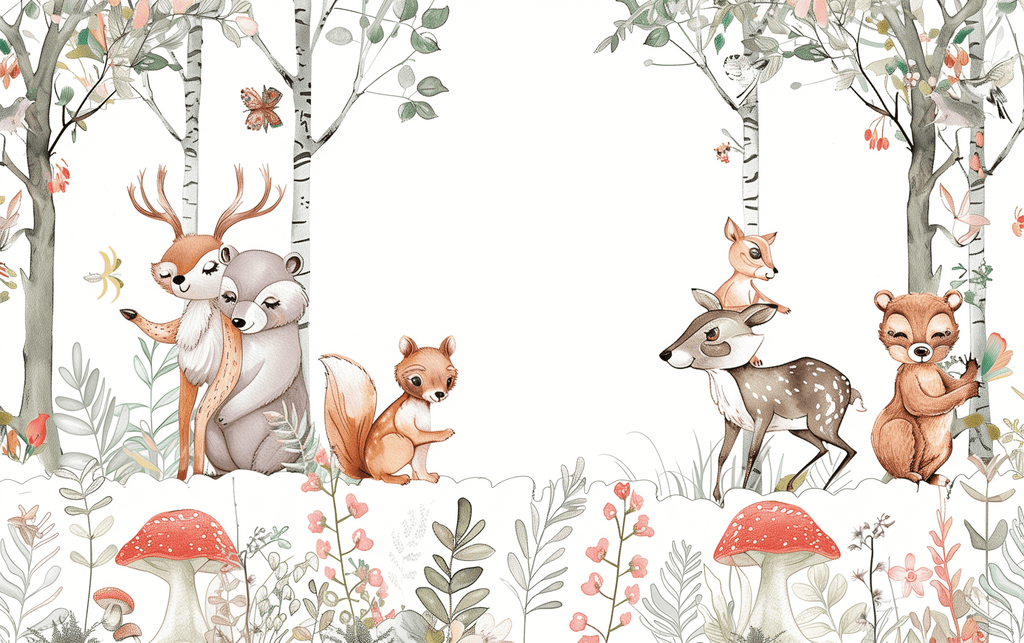 Le Papier Peint Forêt Enchanté Bébé propose un design unique qui éveille l'imagination. Avec ses animaux de la forêt, tels que des cerfs et des renards délicatement dessinés, et ses arbres aux détails subtils, ce papier peint transforme la chambre de votre enfant en un espace magique.