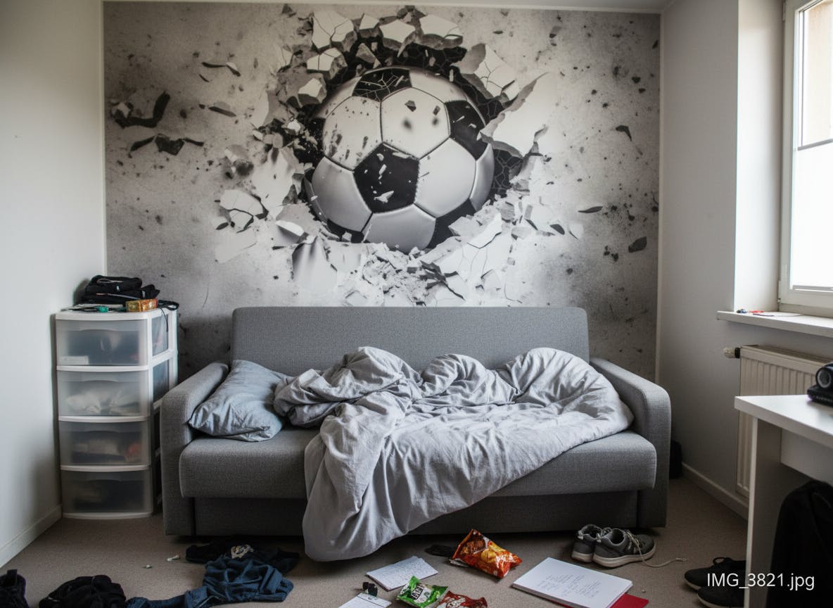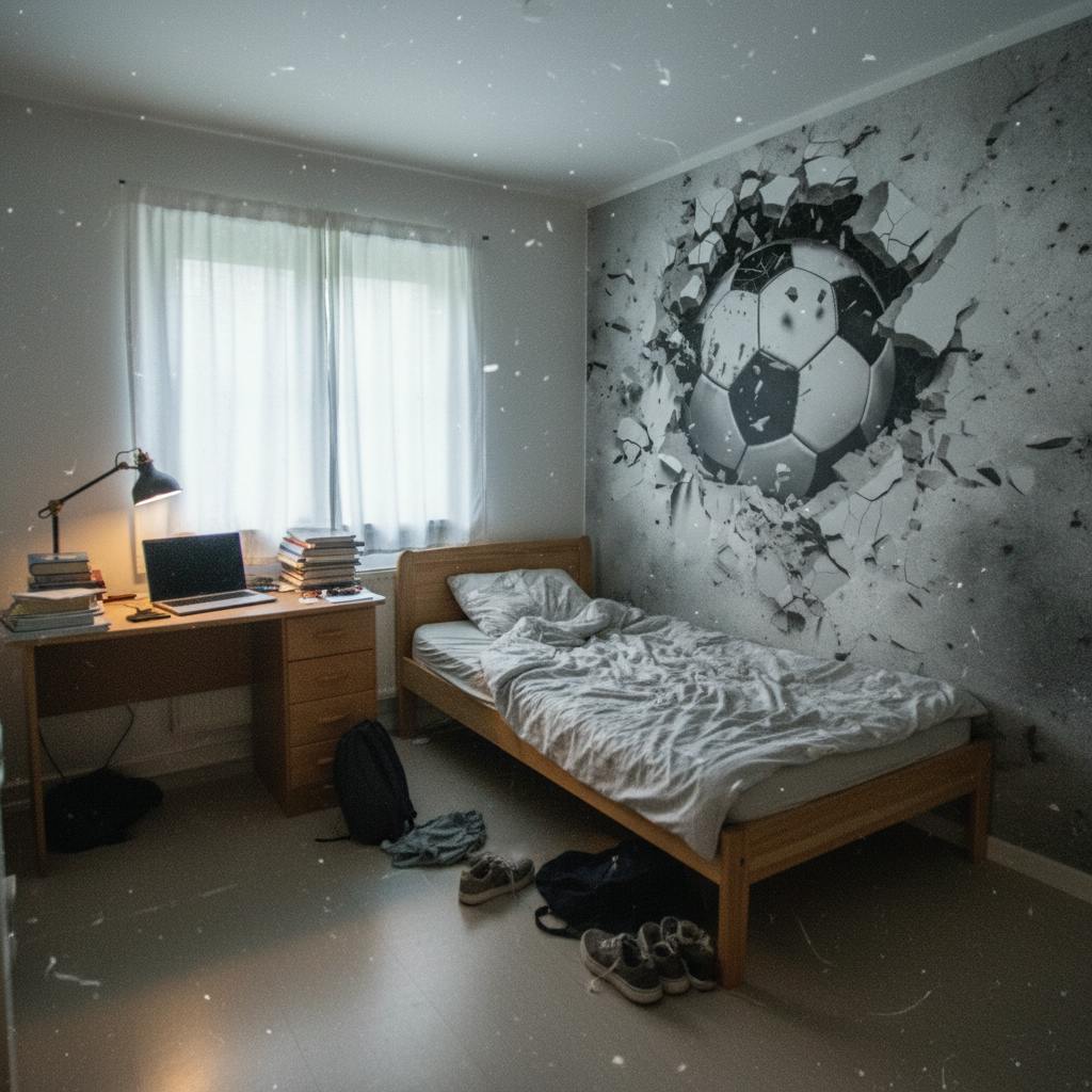 Le design du Papier Peint Trompe L’Oeil Foot est une véritable œuvre d'art qui évoque le dynamisme et la passion du football. Ce papier peint présente un ballon de football éclatant en pleine action, semblant briser le mur de manière spectaculaire, créant ainsi un effet visuel en 3D saisissant.