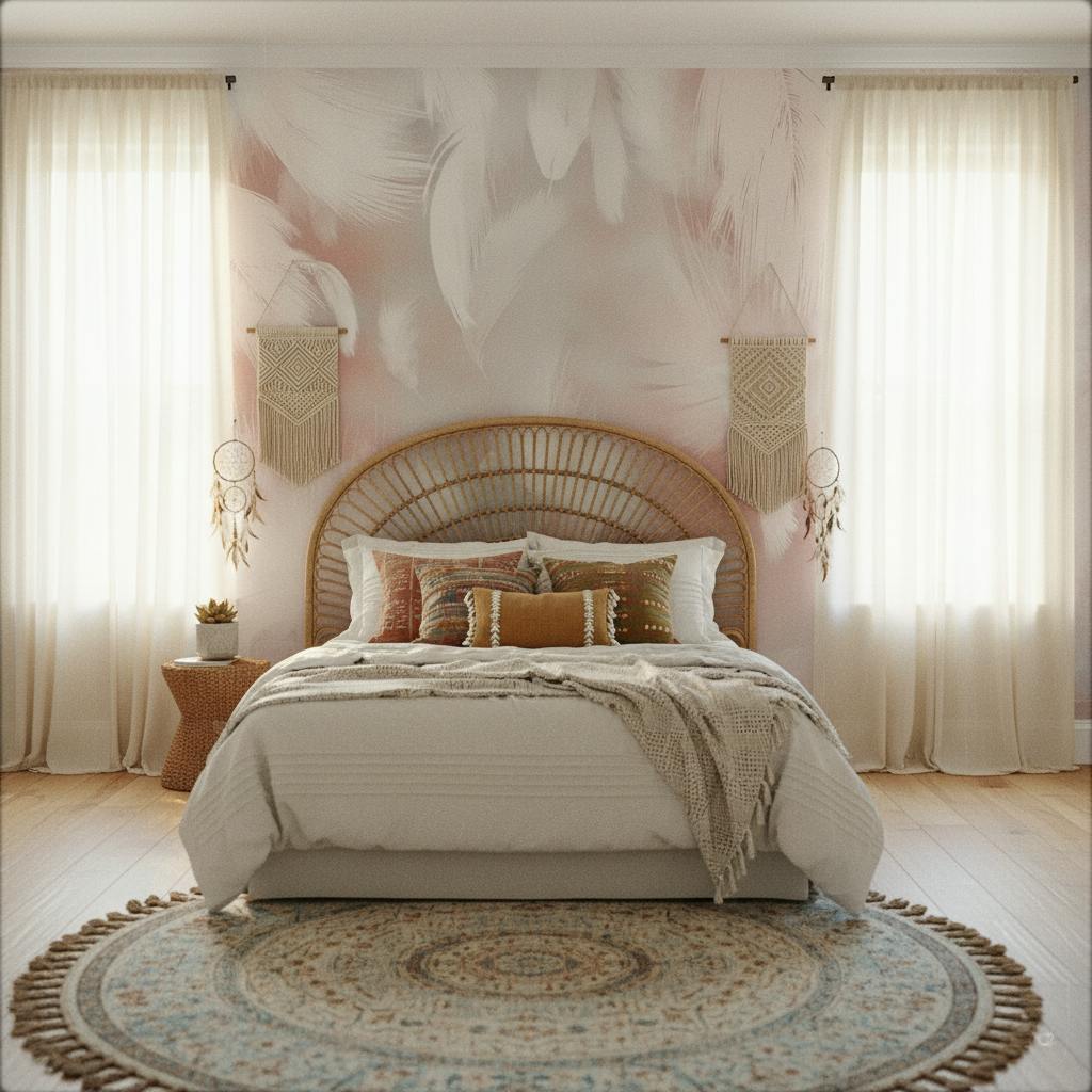Wählen Sie diese Tapete, um die Wände des Schlafzimmers Ihrer Tochter zu dekorieren. Dieser Wandteppich in sanften Tönen schafft eine wunderschöne Dekoration und eine einzigartige Atmosphäre.