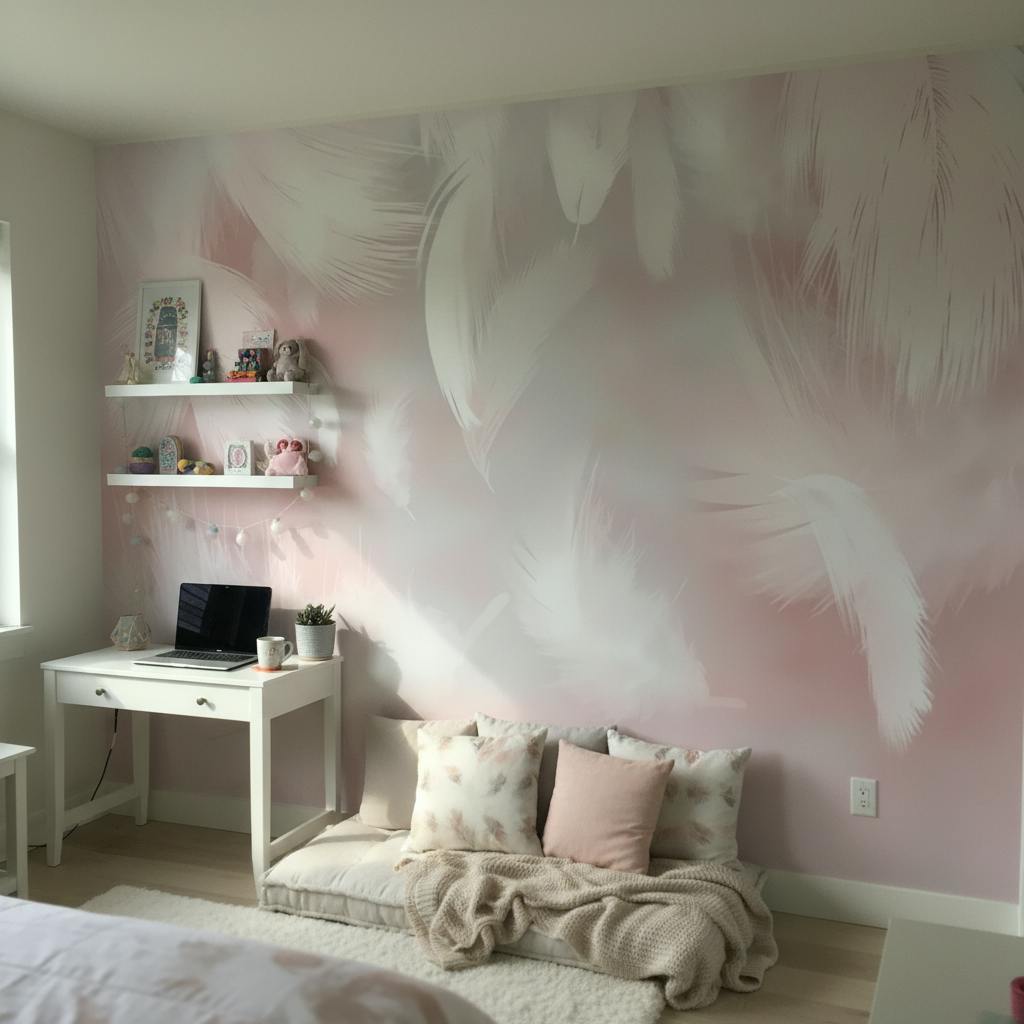 Verschönern Sie das Schlafzimmer Ihrer Tochter mit dieser rosa Federtapete!