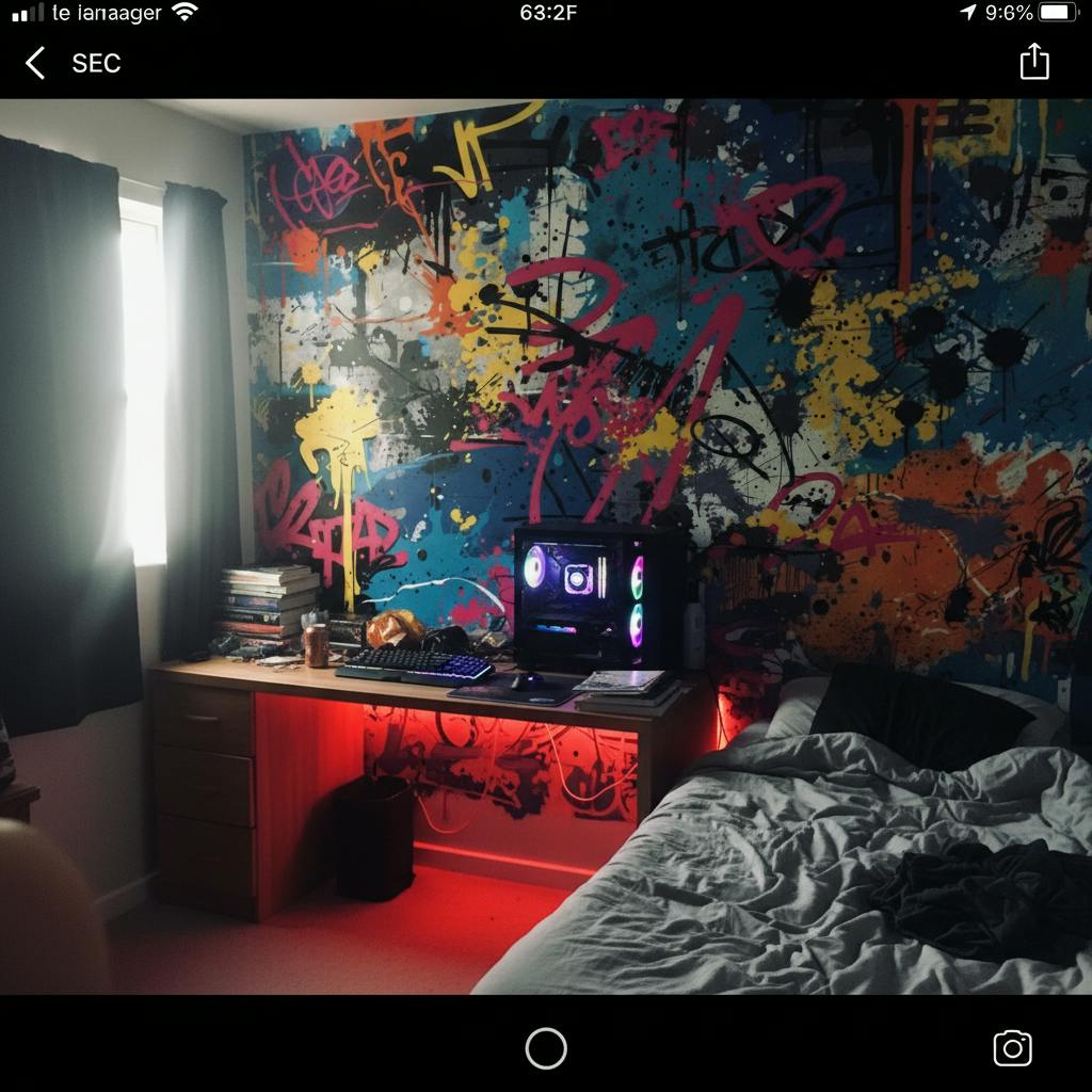 DER Graffiti-Tapete für Teenager fängt die Essenz der Straße mit einem kühnen und energiegeladenen Design ein, perfekt, um dem Schlafzimmer eines Teenagers einen Hauch von Freiheit zu verleihen. Die leuchtenden Farbtupfer und ausdrucksstarken Formen des Musters sind ein Blickfang und verleihen ihm eine fesselnde Dynamik. Diese Tapete ist das ideale Accessoire für moderne Räume mit Charakter und Stil und verwandelt jeden Raum in eine wahre Urban-Art-Leinwand.