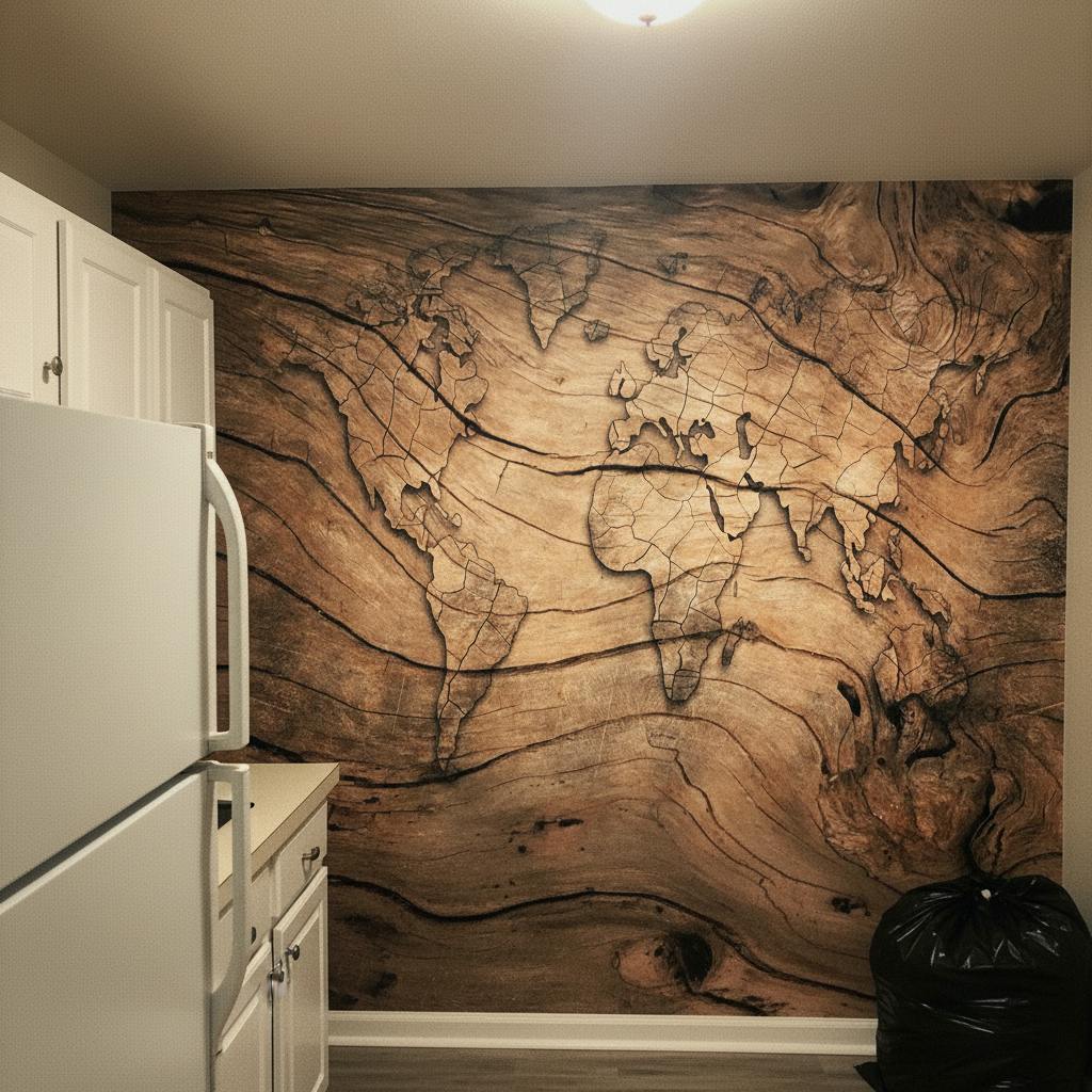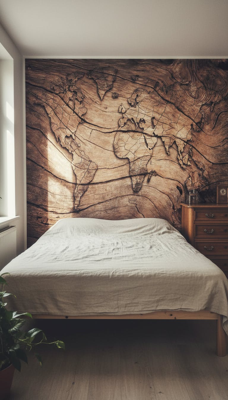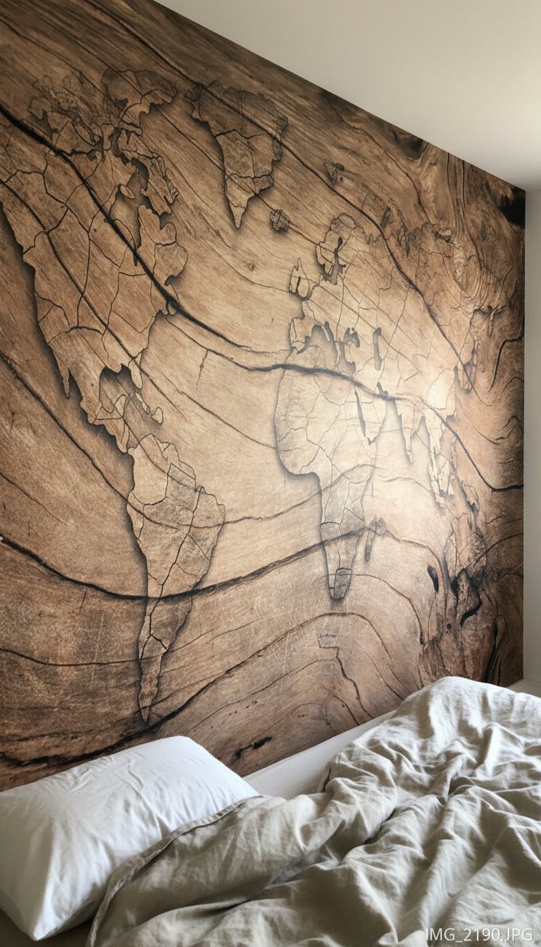 Verlieben Sie sich in diese erhabene Weltkarte in Holzoptik, ideal für ein Schlafzimmer!
