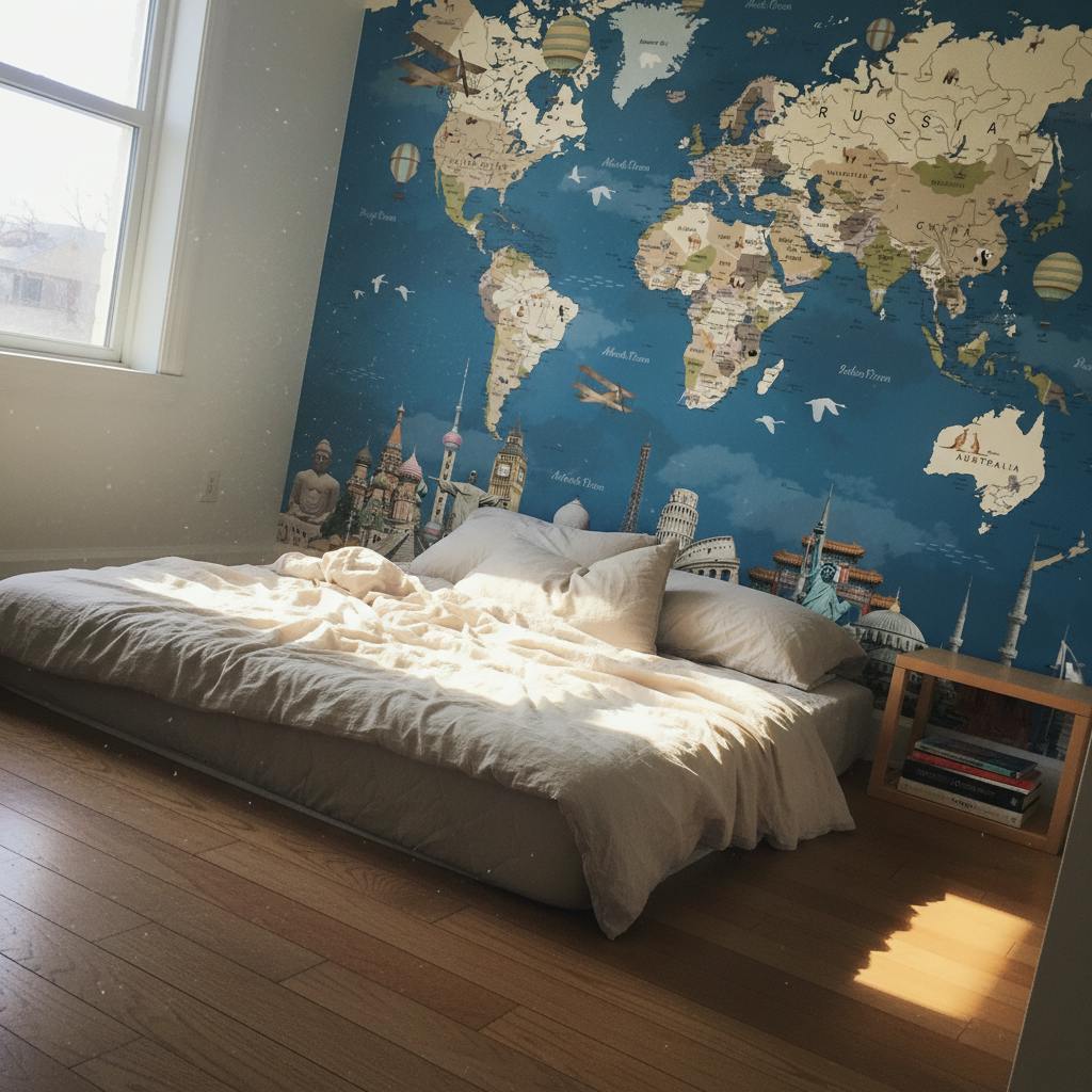 Verlieben Sie sich in diese erhabene Weltkarte, ideal für ein Schlafzimmer!