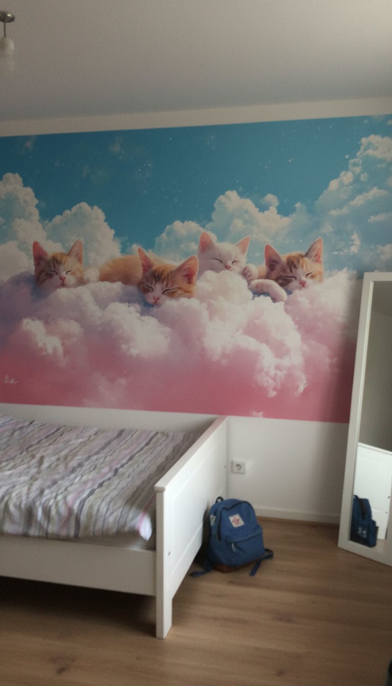 Le Papier Peint Chambre Fille Chaton est parfait pour créer un univers féérique dans la chambre des petites filles. Avec des chatons mignons flottant parmi les nuages colorés, ce design enchanteur transforme n'importe quel espace en un paradis onirique. Idéal pour les chambres d'enfant, il ajoute une touche de magie et de tendresse.