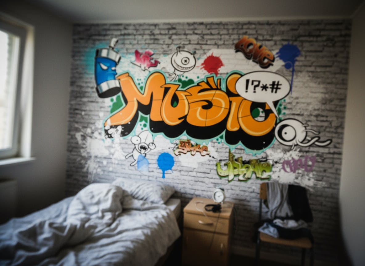 Optez pour ce papier peint graffiti pour personnalisez la chambre de votre ado !