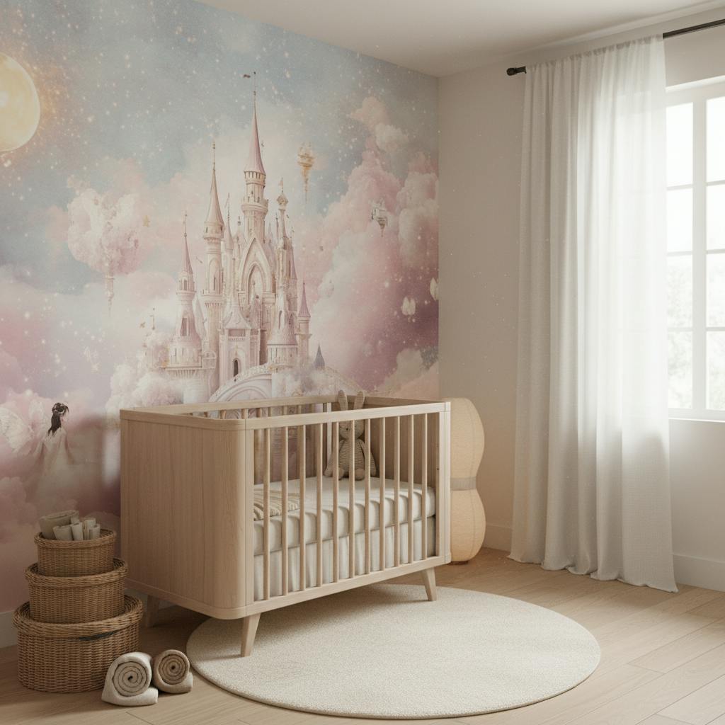 Le motif de château féerique, magnifiquement dessiné, s'intègre parfaitement avec des touches de nuages vaporeux et des étoiles scintillantes. Ces éléments visuels captivants s'associent pour transformer n'importe quelle chambre d'enfant en un véritable royaume magique.