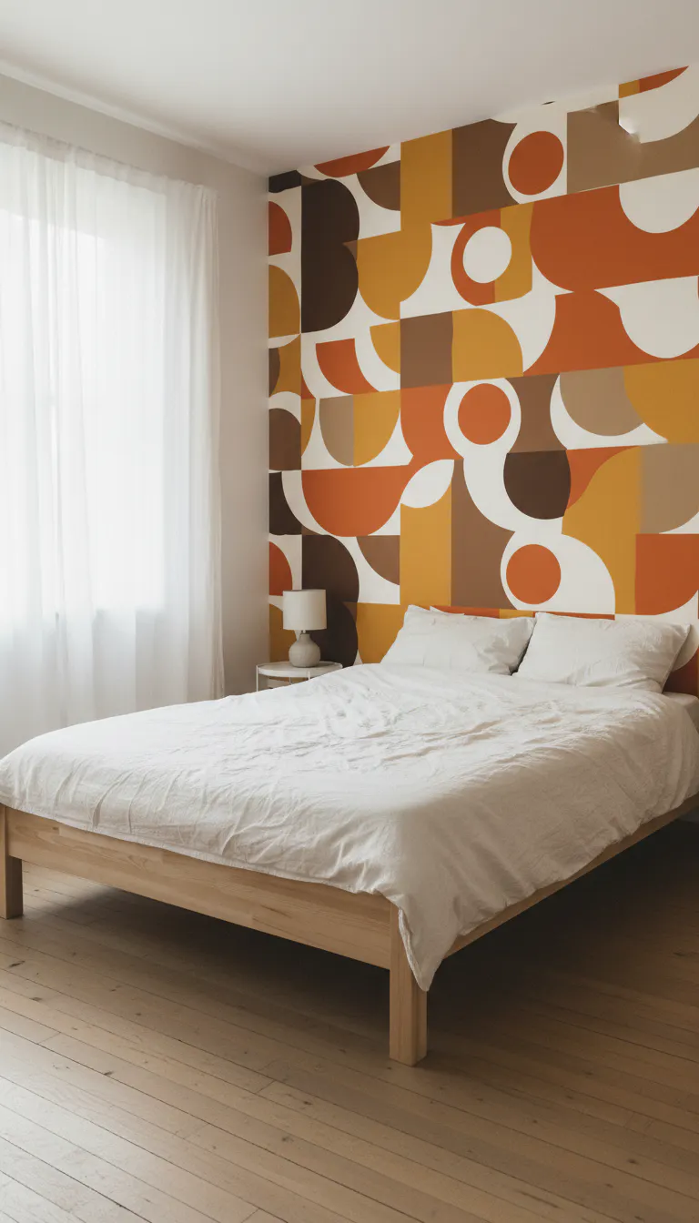 Le motif audacieux du Papier Peint Vintage Orange est un hommage clair aux années 70, avec ses formes géométriques et sa palette de couleurs chaleureuses. Les nuances d'orange, de marron et de beige créent un effet visuel qui est à la fois saisissant et réconfortant.